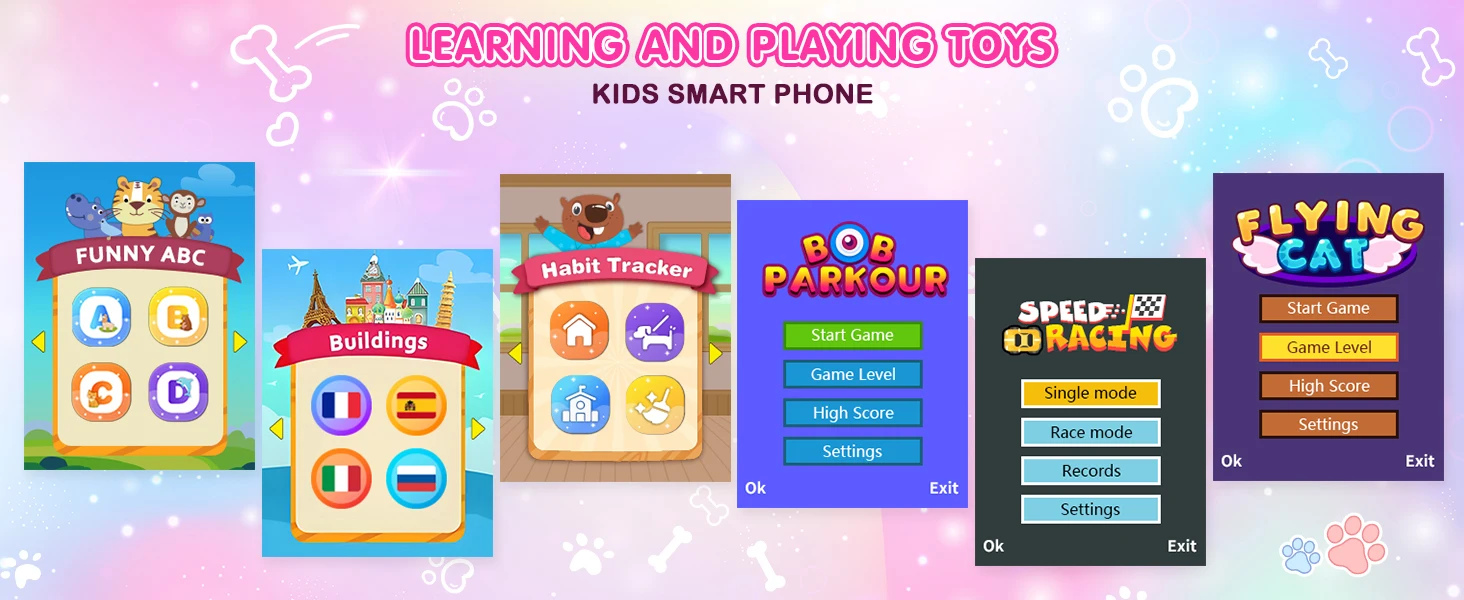 【Upgraded Dual-Camera Configuration】With this toy's dual-camera configuration, kids can easily take photos and customize their devices. Its video recorder, alarm clock, calculator, and voice recorder also add to the fun and creativity. With this smart phone for kids, young ones can learn, have fun, and enjoy endless hours of entertainment